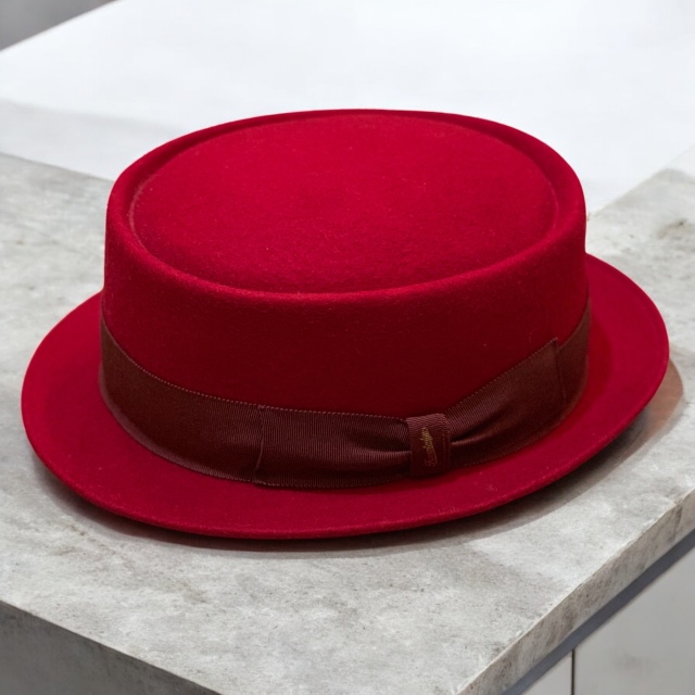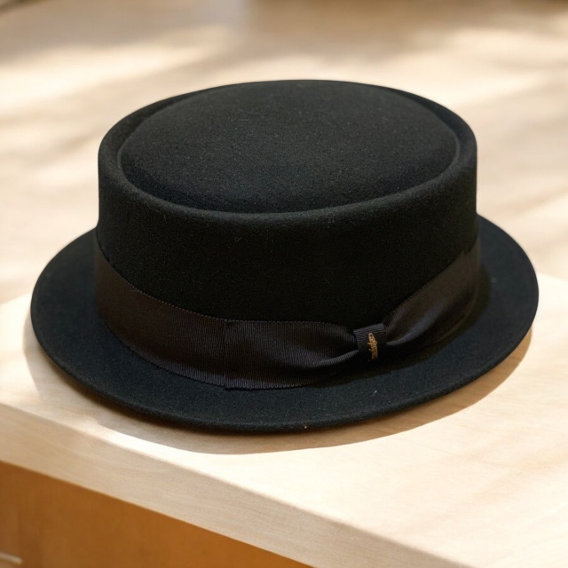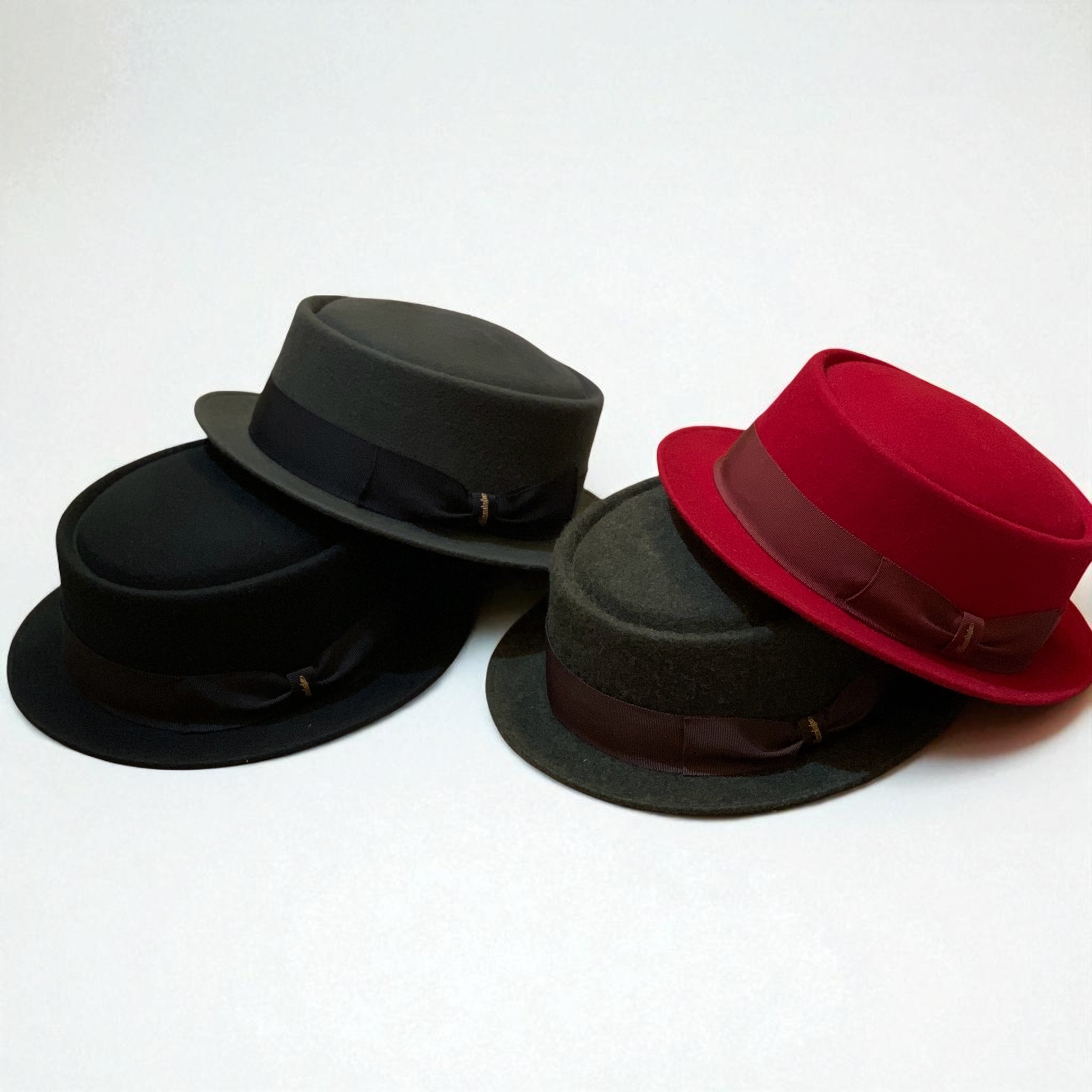 国内での生産は珍しい、フェルトで型入れされたポークパイ。 しっかりと型入れされているため、かぶり心地もよく、型崩れもしにくいです。 モッズスタイルはもちろんアメカジファッションやトラッドなど幅広いジャンルの格好にも対応できます。