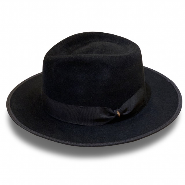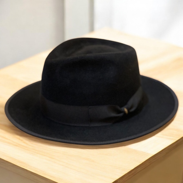 内側にはサイズ調整テープ付きでフィット感の微調整も簡単。長く愛用できる一生モノのブラックハットをお探しの方におすすめの一点です。キメが細かく高品質なフェルトハットです。