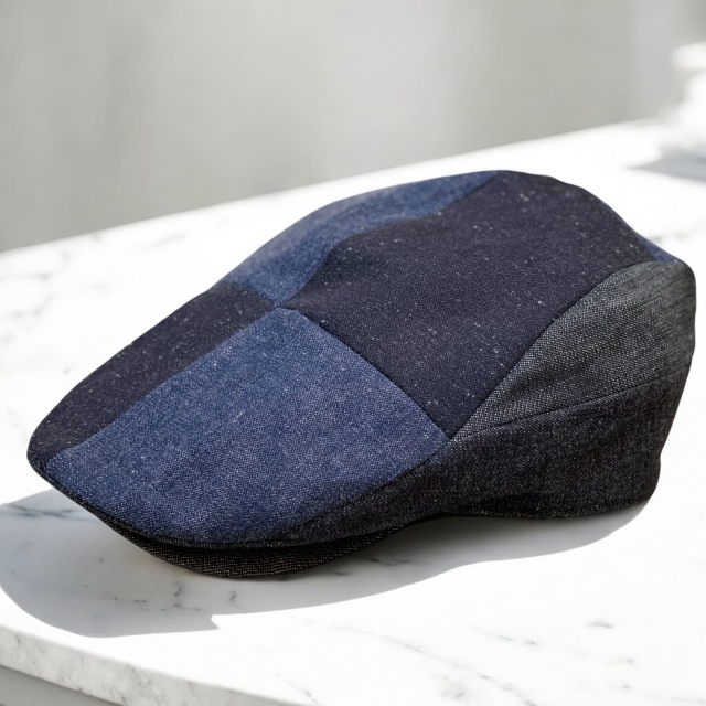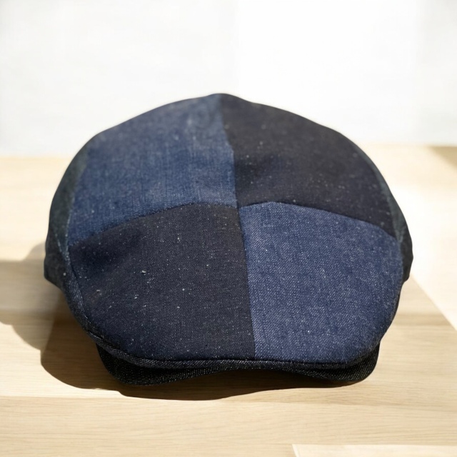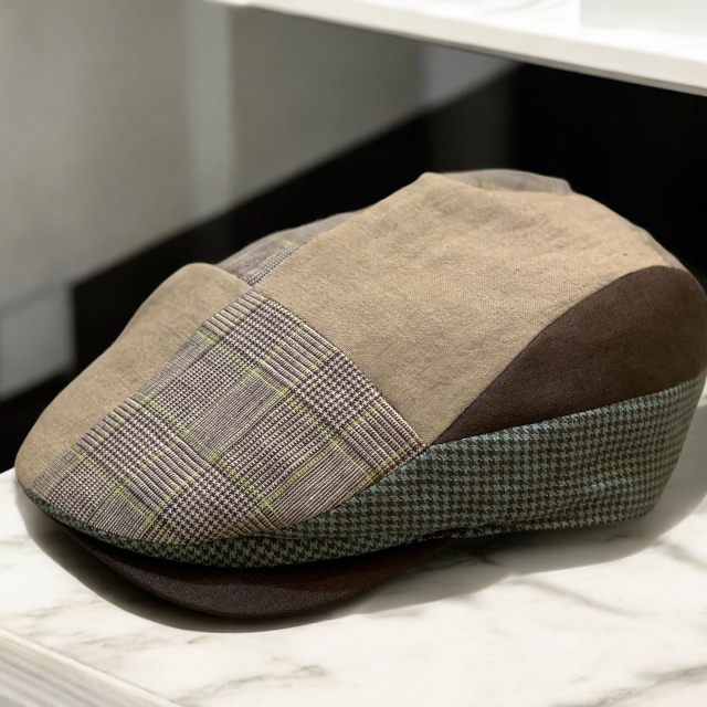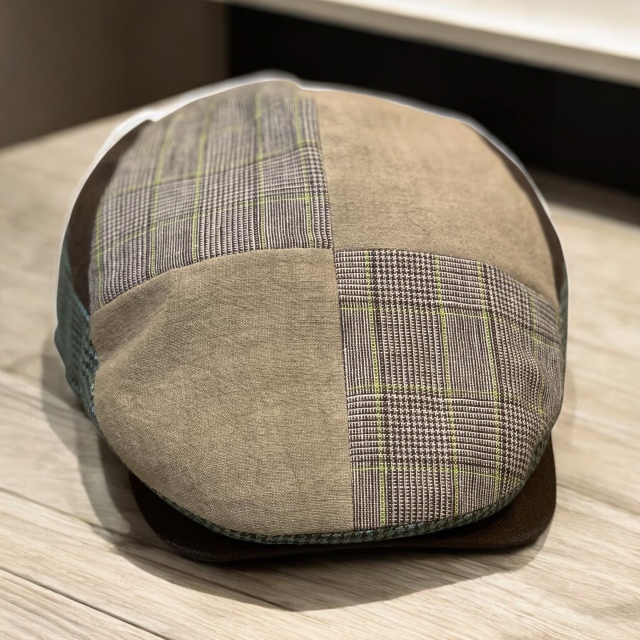 薄く涼しげなカラーリング、夏向きの生地を使用した切り替えハンチング。