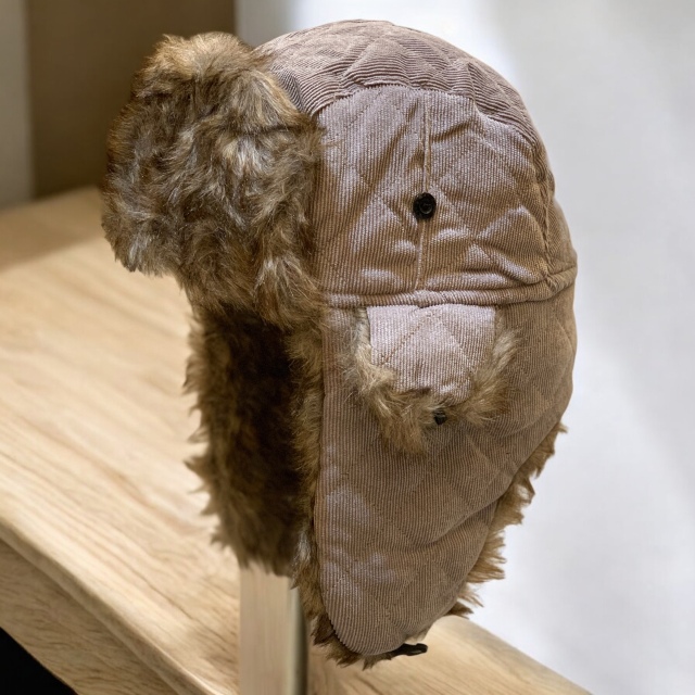表地には畝の立ったコーデュロイ素材を使用。内側と耳当て部分には毛足のあるファーをたっぷりと配しました。 海外で縫製された後、KNOWLEDGEアトリエで専用の機械で型入れとスチーム処理を施すことで 頭の方々に自然に沿う立体感とかぶった瞬間から感じられる柔らかさを実現しています。 スチーム工程により生地とファーが馴染み、ボリュームがありながらもゴワつかず、長時間の使用でも快適です。 ファー部分は肌当たりがやさしく、チクチクしにくい為、寒い季節でもストレスなく着用可能。 耳当てはおろせば防寒性を高め、上げればすっきりとした印象に。 街使いはもちろんアウトドアや旅行など防寒を重視したシーンでも活躍します。