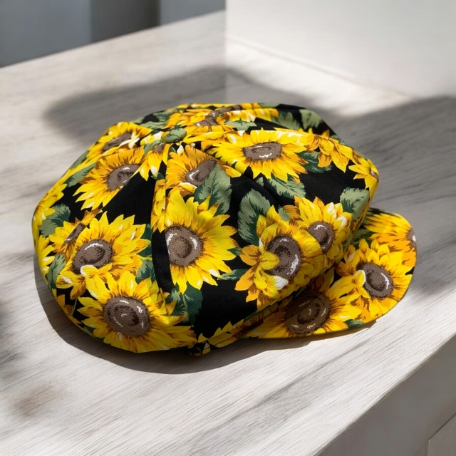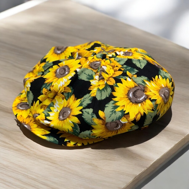 ひまわり柄の生地を使用した珍しいキャスケット。