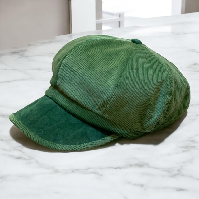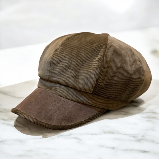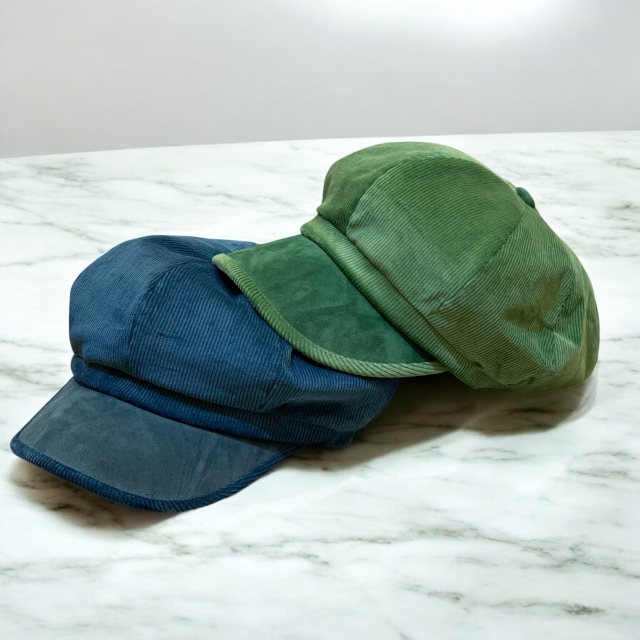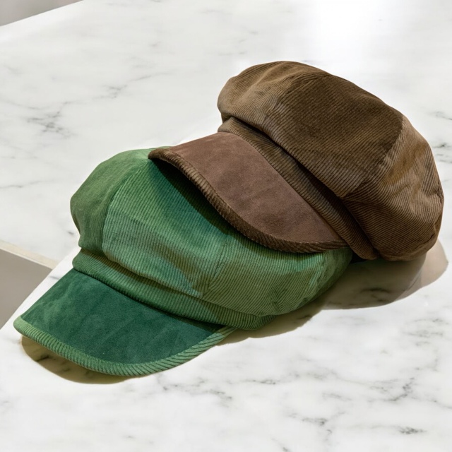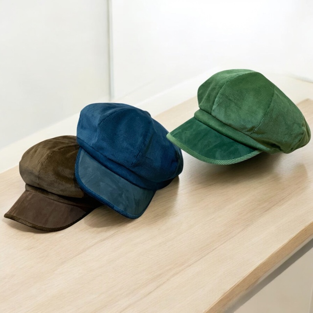 やわらかく温かみのあるコーデュロイ素材を使用した秋冬向けキャスケット。光沢感のある表情と太畝の質感が季節感を引きだてます。幅広いコーディネートにマッチするので、デイリー使いには最適なキャスケットです。