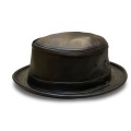 クラウンは低めでシャープ、ブリムは程よい幅でバランスの取れたシルエット。レザー特有の光沢がコーディネート全体を引き締めシンプルな装いでも一気に大人の雰囲気を演出します。