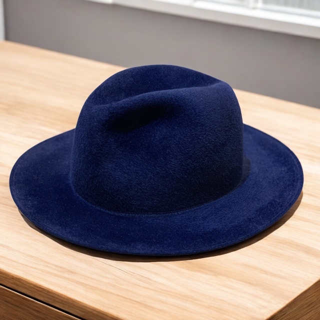 ポーランド産の上質なラビットファーフェルトを使用したトラベラータイプのフェドラハット。 滑らかな手触りと上品でマットな光沢が魅力。