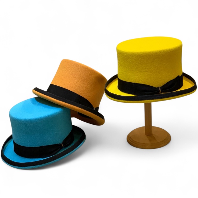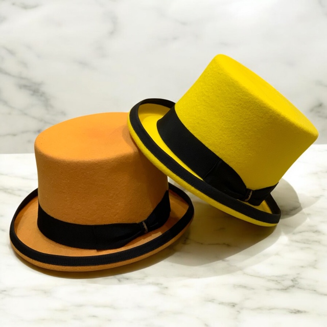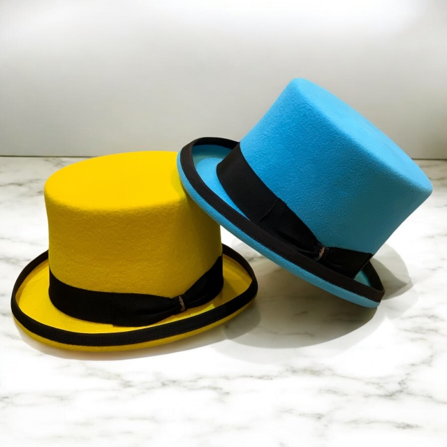 ポーランド産の上質なフェルト素材を使用し、滑らかな手触りとしっかりとしたフォルムを実現しました。クラシックなシルエットに黒のリボンを合わせることでエレガントさと遊び心を両立。ファッションイベントやステージ衣装、普段のコーディネートのアクセントにもおすすめです。