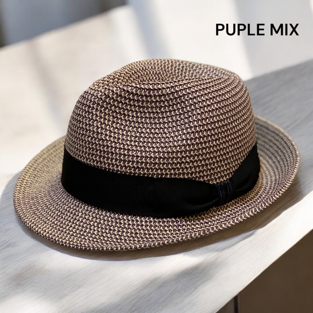 ミックスの爽やかな色合いと他社にはないかぶり心地が特徴的な帽子です。 UVカットがついていますので強い日差しにも最適です。 リボンは霧吹きなどで水をかけてもらえればしわが取れる素材を使用しているので 折り畳みも可能です。